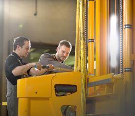 Last but not least, the truck undergoes a final inspection by means of a functional test with rated load. Each truck completes its industrial refurbishment as a Jungheinrich JUNGSTAR in premium quality, including a safety certificate as well as a personal quality promise by the technician in charge.